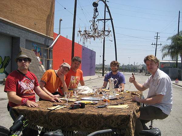 CouchSufing's crème de la crème!! Met at the Library Bar, shared some Chimay (best beer ever), dropped a Land Surfer on the 210, flew kites on a dry lake bed, trolleyed to the Griffith Observatory, shared unlawful waffle non-awful falafels, gelechtered at a Jewish comedy show, animated astronauts with no arms, picnicked at the Rose Bowl, Lindy Hopped with Masonics, techno-ed with rainbows, dined on fine dumpster pudding, played silly drawing games, and shared custody of lovely Couchsurfers at his place! lolol In return he drank my Slimfast, showered me in glass shards, broke into my house and stole my heart! He's a once in a lifetime kind of man. Meet him and FEEL ALIVE - You'll see! L.A. won't be as beautiful without you! :(